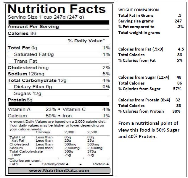 Skim Milk is 5% Fat and 57% Sugar. So what?